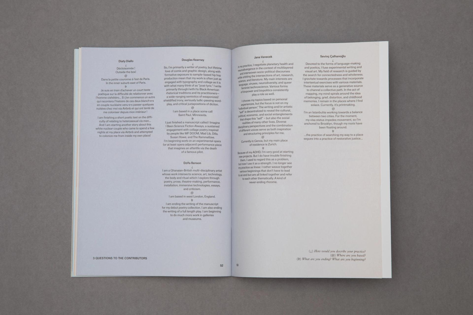 with texts by Dzifa Benson, Sevinç Çalhanoğlu, Diaty Diallo, Douglas Kearney, Jana Vanecek and an epigraph by Trinh T. Minh-ha.